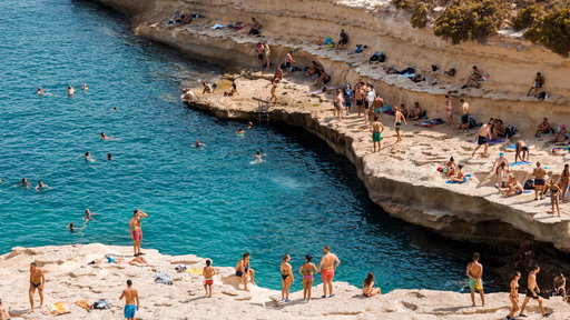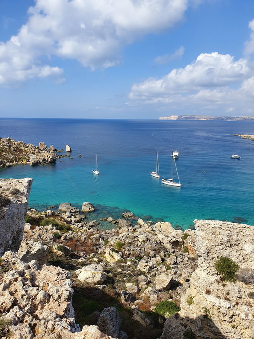 - Blaue Lagune: Schwimme im kristallklaren, türkisfarbenen Wasser, das zum Schnorcheln und Entspannen auf der Insel Comino einlädt.