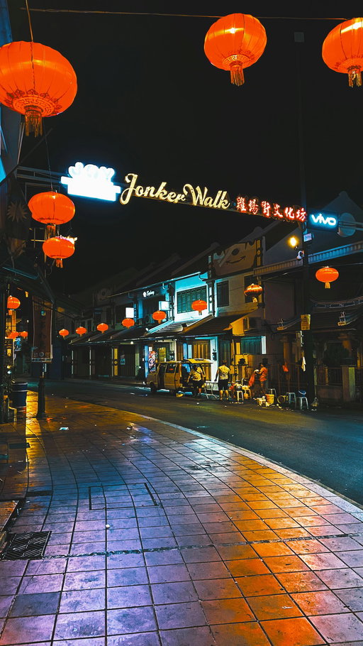 - Jonker Street (Jalan Hang Jebat): Das Herz von Chinatown, berühmt für seine Antiquitätenläden, den Nachtmarkt und die lebhafte Atmosphäre.