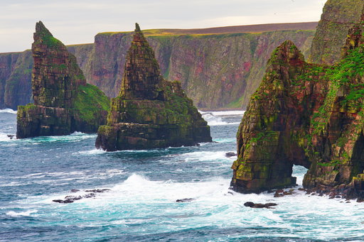 - Duncansby Head: Wandere zum Duncansby Head, um die berühmten Duncansby Stacks zu sehen, eine Reihe dramatischer Felsen, die aus dem Meer ragen.
