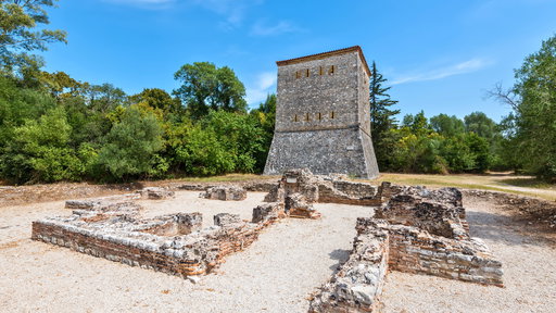 - Venezianischer Turm: Dieser venezianische Turm aus dem 15. Jahrhundert, der die Stätte von einem Hügel aus überblickt, wurde gebaut, um die Stadt vor eindringenden Truppen zu schützen. Klettere den kurzen, aber lohnenden Weg hinauf, um einen Panoramablick auf die archäologische Stätte, den Butrint-See und die umliegende Landschaft zu genießen. Es ist ein friedlicher Ort, um die atemberaubende Landschaft zu genießen und über die strategische Bedeutung von Butrint im Laufe der Jahrhunderte nachzudenken.
