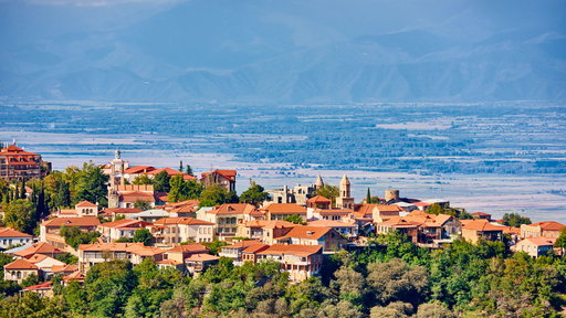 Signagi, auch bekannt als „Stadt der Liebe“, ist Georgiens romantischste Stadt mit Kopfsteinpflasterstraßen, farbenfrohen Häusern und Panoramablick über das Alazani-Tal. Sie ist auch das Herz der georgischen Weinregion.