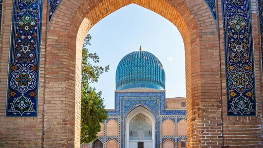 - Gur-e-Amir-Mausoleum: Die letzte Ruhestätte von Timur (Tamerlan) selbst. Die goldene Decke im Inneren ist so prächtig, dass sie jeden Sonnenstrahl erblassen lässt. Das Äußere des Gebäudes mit seiner gerippten Kuppel ist eines der Wahrzeichen der Stadt.