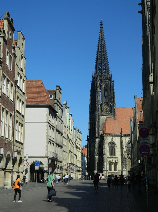 The Prinzipalmarkt has always been the home of the merchants and even today it is still one of the most important shopping streets in Münster. During the day, there is a lot going on here when the inhabitants and visitors cavort in the shops or restaurants. And although the market is part of the city centre, buses, cars and of course lots of cyclists also ride here.